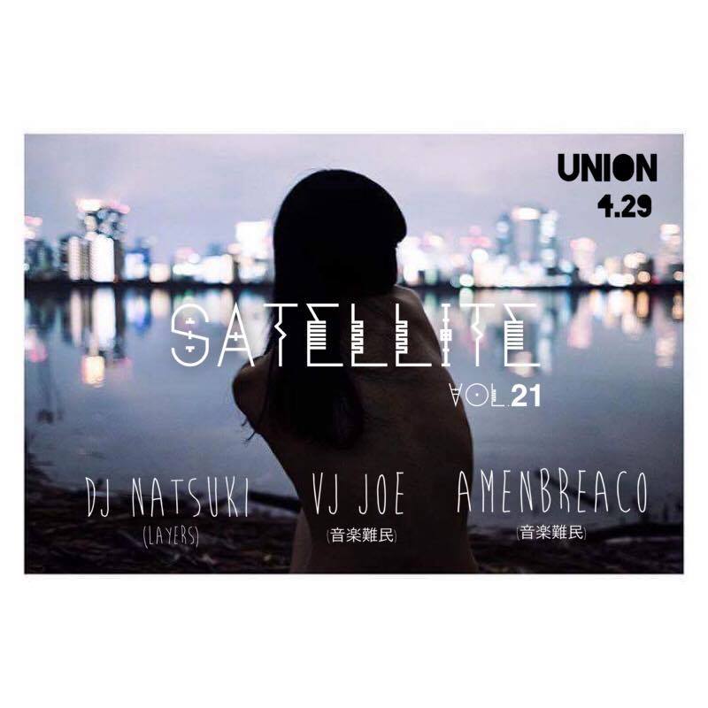 Satellite is held at Union on the last Saturday of every even-numbered month. We specialize in the cosmic sounds of House / Disco / Funk / Techno / Bass with a penchant for the left-of-center. Since 2013, we’ve been connecting international artists and the Japanese underground scene with a focused -but never limited- approach to music that seeks to capture a timeless sound in which the past and the future are inextricably intertwined.
