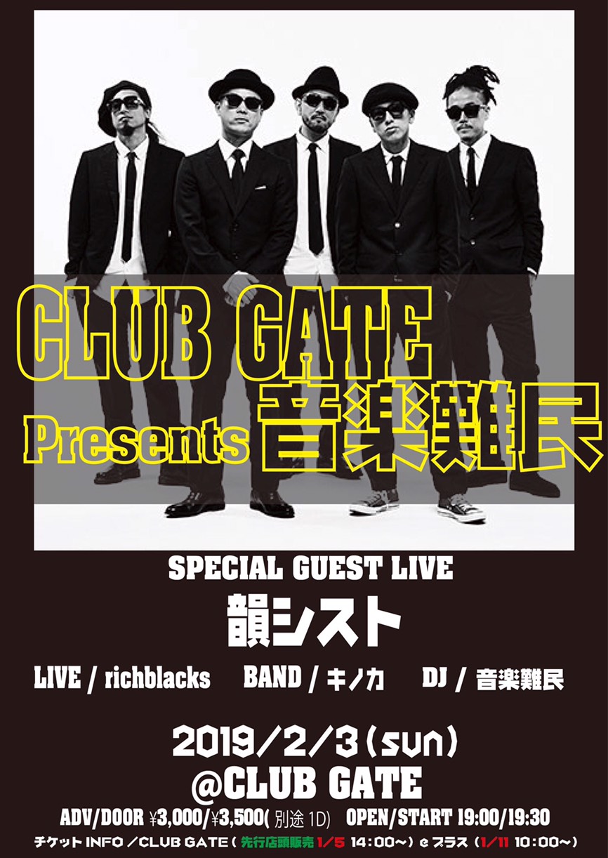 2019年1発目はCLUB GATEさんにお誘いいただき、韻シストさんをゲストに遊びます。